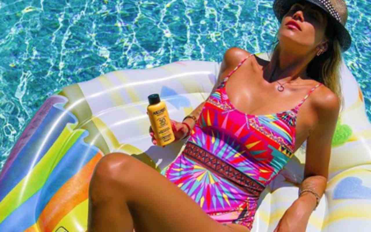 Melissa Satta conquista i suoi fan su Instagram con una foto in costume mentre prende il sole in piscina.