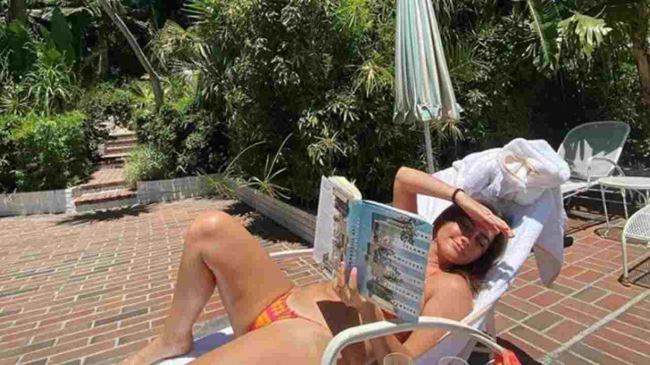La ragazza infatti, su Instagram ha postato una serie di scatti che la ritraggono in uno spaccato di vita quotidiana. In compagnia del marito, semi assonnata sul divano di casa sua ed intenta a giocare con il suo cane, di razza pastore tedesco probabilmente. Ma anche e soprattutto intenta a prendere il sole nel giardino della sua villa.