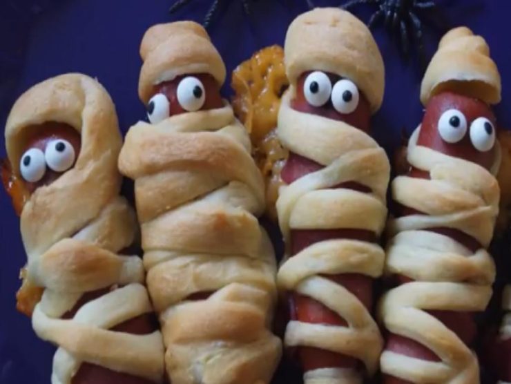 Nella notte di Halloween oltre a zombie, streghe e fantasmi non possono mancare le mummie. E allora perché non riprodurle in un menù per una cena a tema da passare con amici? Una sfiziosità divertente da preparare anche insieme ai vostri bimbi.