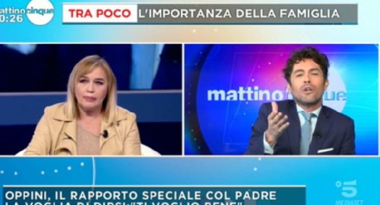 Francesco Oppini si è commosso al Grande Fratello Vip vedendo il videomessaggio del padre, Lory Del Santo ha criticato le sue lacrime a Mattino Cinque