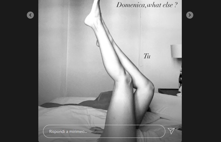 Domenica, che altro? Ha citato la famosa battuta di George Clooney, Miriam, per celebrare una domenica di Relax nel suo letto. La modella si è mostrata in uno scatto in bianco e nero, tra le lenzuola, con le gambe nude in verticale. “Domenica, What else?”, ha scritto nella storia, per poi rispondersi da sola con un emblematico “Tu”.
