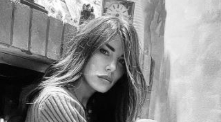Eccola qui, come poc’anzi detto. Lo sguardo, ammaliante, rivolto verso la telecamera. Lo scatto in bianco e nero, ma dietro a lei c’è un camino, con un rosso fuoco pronto ad ardere e scaldare l’ambiente intorno a lei.