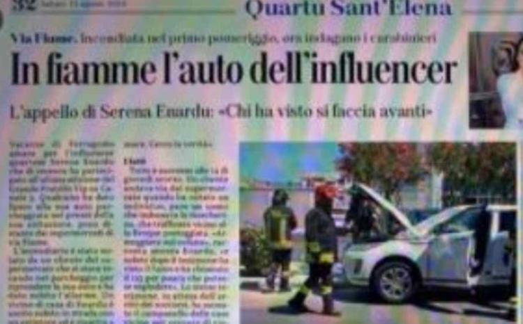 L’incendio in via Livatinio, a Quartu Sant’Elena. Sul posto, gli agenti della polizia di Quartu, hanno trovato la vettura in fiamme – una Land Rover – danneggiata nella parte posteriore. I testimoni parlano di un forte boato intorno alle 22.00. Probabilmente, a breve, la donna potrebbe intervenire sull’accaduto per far luce e dare spiegazioni anche ai fan sui social, come in occasione del primo incendio.