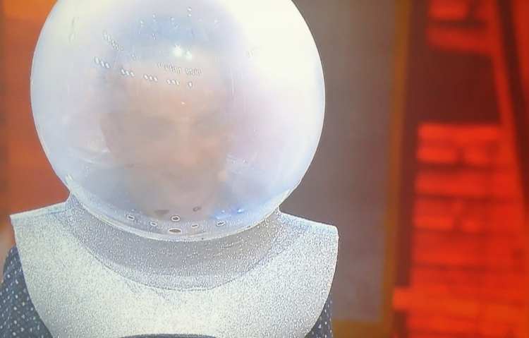 Il conduttore a questo punto ritorna al suo posto, ma ridendo continua a pensare a quanto accaduto: “Sta restando solo il busto. All’interno non si sa dove sia la capoccia”. Una scenetta, quella del casco appannato che potete vedere nella foto sopra, che fa scattare fragorose risate da parte del pubblico. A quel punto, Bonolis parte con le domande alla concorrente e va avanti con la trasmissione.