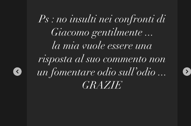 Dopo un batti e ribatti tra i due, a suon di post tra Instagram e Twitter, sono arrivate le scuse da parte di Urtis, che ha voluto chiudere la questione con un secondo tweet. Dopo il post di Giacomo nella nottata di ieri, Rosalinda era infatti intervenuta sulle sue storie Instagram (LINK QUI), per dire la sua riguardo la questione.