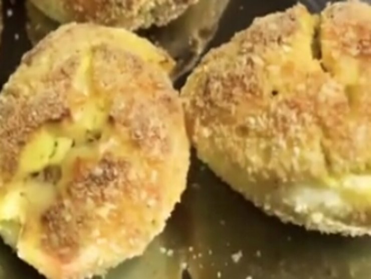 Ora, aggiungete il parmigiano grattugiato e le acciughe precedentemente sciolte nel burro. Mescolate per far amalgamare bene gli ingredienti. A questo punto, prendete le uova e farcitele con il composto ottenuto. Infarinate ciascun uovo dopodiché passatelo nell’uovo sbattuto e poi nel pangrattato. Terminato di impanare tutte le uova procedete con la cottura.