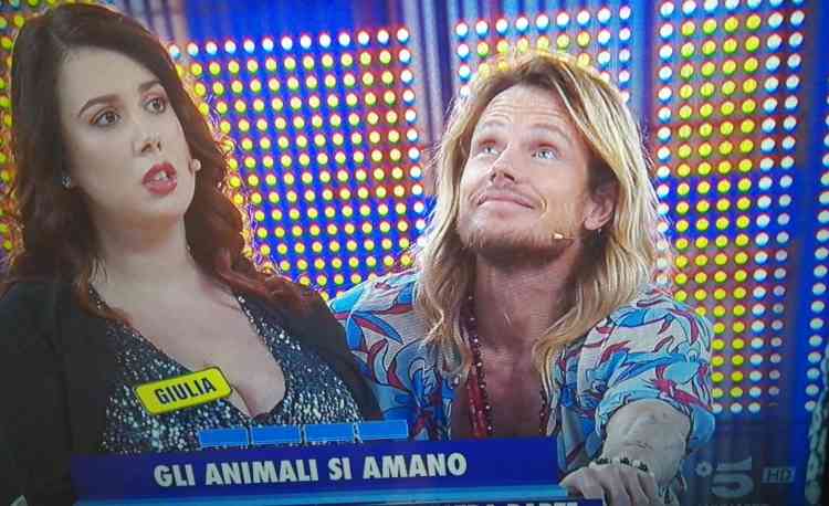 La ragazza entra e lascia tutti senza parole: il decollete di Giulia è molto abbondante. “Scusate se mi si stacca il cartellino, buonasera a tutti”, esordisce la concorrente. “Buonasera a tutti voi”, risponde Laurenti, subito a rimarcare l’ampio senso. “A me piace molto stare con gli altri”, continua la ragazza. “Eh ma pure agli altri”, dice Bonolis, facendo scattare una risata generale. “Mi reputo una persona molto socievole sia nella vita reale che sui social network”, conclude Giulia. L’argomento è “Gli animali si amano” e inevitabilmente crea grandi siparietti e ilarità tra la concorrente e i conduttori, ma purtroppo il suo percorso finisce subito con due errori immediati.