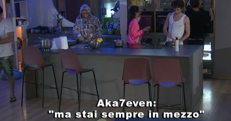 Aka teme di uscire ed ha fatto sapere ai suoi colleghi che, se questo succedesse, prima di andarsene si cucinerebbe una bella pasta asciutta. Serena, presente alla discussione ha detto al ragazzo che stava esagerando, cercando di smorzare la tensione.“Stai sempre in mezzo, fatti i fatti tuoi” ha esclamato con violenza il cantante. La ballerina si è sentita ferita e dopo qualche minuto di silenzio ha risposto anche lei.