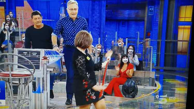 Simona, in particolare, incalzato dal noto conduttore, alla fine cede e inizia a ballare una danza particolare servendosi di un oggetto di scena. Infatti, questo ballo richiede l’utilizzo di un bastone e la produzione mette a disposizione di Bonolis un bastone con all’apice una mano. Simona toglie le scarpe e inizia a ballare, agitando il bacino. E’ particolarmente brava e stupisce anche Paolo che sottolinea: “Gagliarda, mamma mia”. E Jurgens conclude il siparietto con una battuta: “Questa a geriatria va fortissimo”. Il pubblico impazzisce con gli applausi.