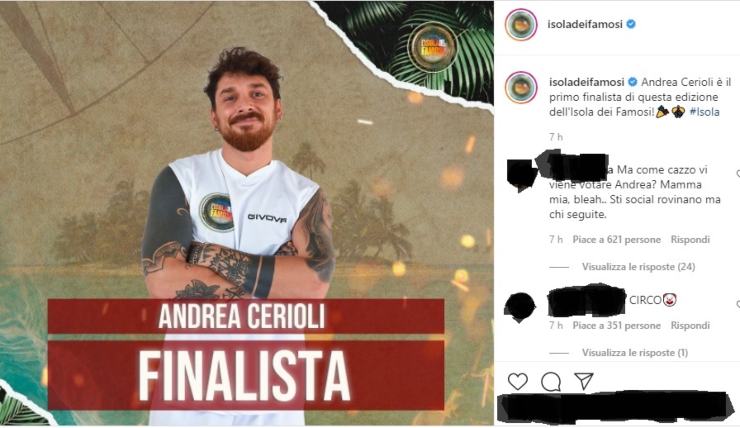 E la decisione di portarlo in finale non è piaciuta a molti fan della trasmissione. Su Instagram, infatti, tantissimi commenti di dissenso verso questa decisione. “Ma come vi viene di votare Andrea?” scrive un follower che poi punta il dito sui social, che “rovinano“. E molti dello stesso tenore i post, a dimostrazione di come il pubblico sia diviso.