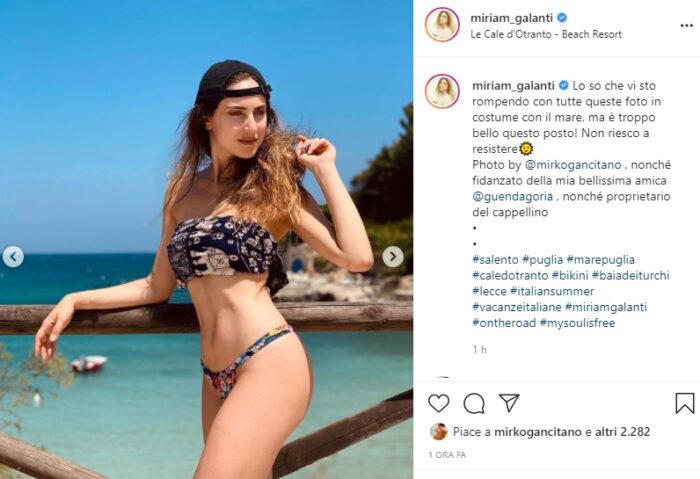 Miriam Galanti da qualche giorno sta postando sui social una serie di foto in costume al mare. Come tanti personaggi noti del mondo dello spettacolo, anche lei si sta godendo le vacanze estive in compagnia di amici e famiglia. In particolare, si trova a Lecce nel bellissimo mare della Puglia.