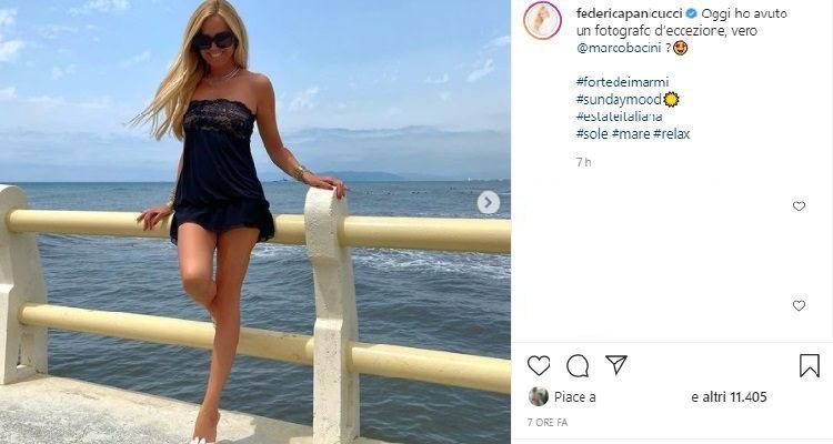 Federica Panicucci incanta il web, il vestito è cortissimo e il panorama stupendo