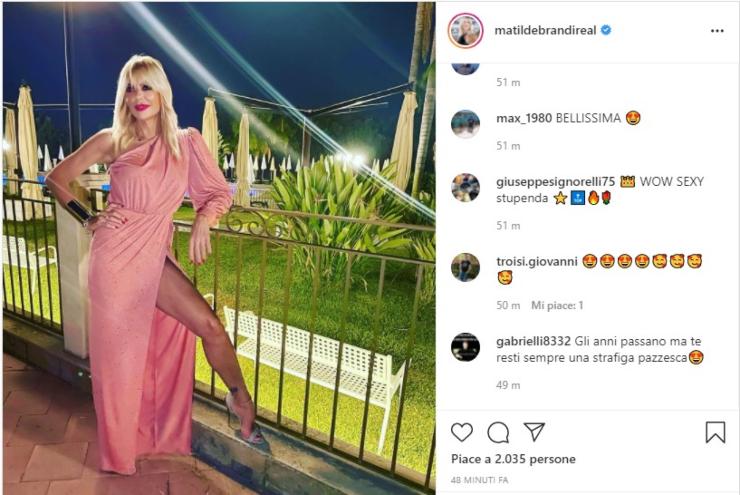 Sono bastati pochi minuti per scatenare i follower della ballerina. Matilde si trova in un meraviglioso resort di cui si ignorano le esatte coordinate. La Sicilia però rende la showgirl devastante ed il suo scatto infiamma i fan. Bellissima in abito da sera color rosa, Matilde guarda verso l’orizzonte ed intanto mette in primo piano le sue gambe da urlo.