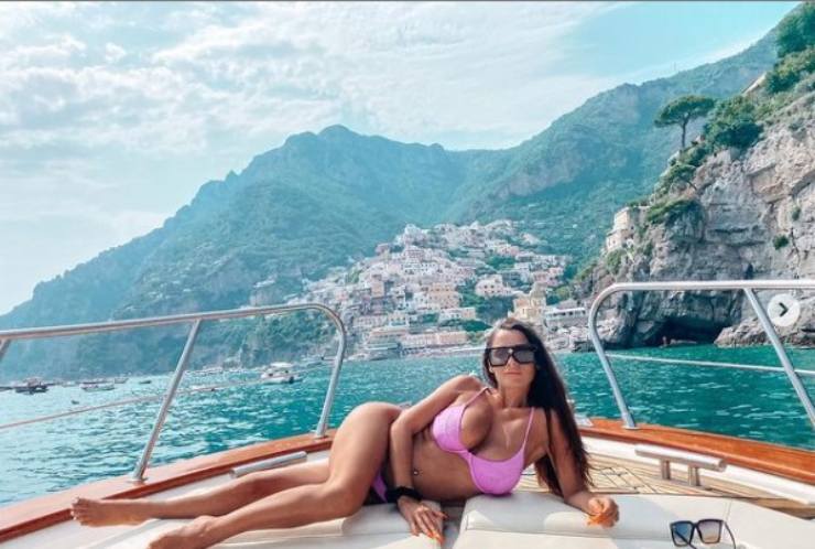 Felice e rilassata, la showgirl di Avanti un Altro si gode l’estate in Italia e gli ultimi momenti di completo relax prima dell’arrivo del suo piccolo. Alessia si trova nel suo posto preferito e sarà forse per questo che è meravigliosa. In barca a Positano, la giovane indossa un bikini color rosa che mette in risalto la sua abbronzatura.