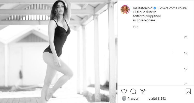 Nell’ultimo scatto postato ieri sera su Instagram Melita Toniolo è super sensuale. Il body che indossa è davvero seducente ed esalta il suo corpo statuario. Il suo sguardo è travolgente e ammaliante, più bella e provocante che mai ha conquistato tutti.