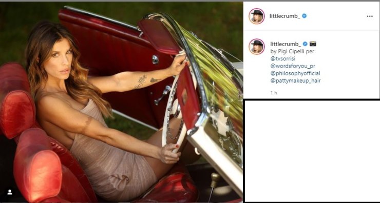 Se recentemente, invece, in un post ha indossato un top fin troppo aderente da mostrare protuberanze, nell’ultimo post sembra pronta per partire. E’ in auto, al posto di guida, con il volante tra le mani. Sguardo penetrante, indossa un mini vestito senza bretelline che ci regala la visione dell’ampia scollatura e delle gambe perfette.