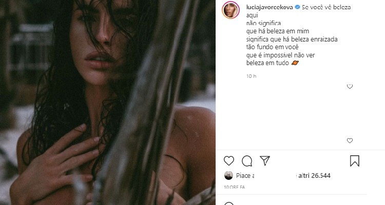 Nell’ultimo scatto postato ieri sera su Instagram Lucia Javorcekova è molto sensuale e provocante, anche se non si vede molto si capisce chiaramente che non indossa il reggiseno. Il suo décolleté da urlo in primo piano si intravede ma la modella questa volta non mostra troppo. Con la sua assurda sensualità ha ammaliato il web, è davvero stupenda.