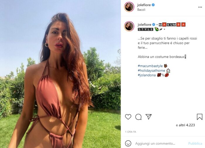 Jolanda De Rienzo ha fatto un abbinamento costume-capelli ma ha infiammato gli animi dei suoi follower. Curve coperte a stento.