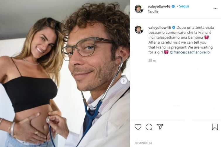 Fiocco rosa in casa Rossi. Il campione e la sua compagna Francesca Novello sono in attesa di una bambina. E molto ironico è stato il modo in cui i due hanno deciso di comunicarlo ai fan. “Dopo un’attenta visita possiamo comunicarvi che la Franci è incinta” ha scritto lui fingendosi un medico nelle fotografie.