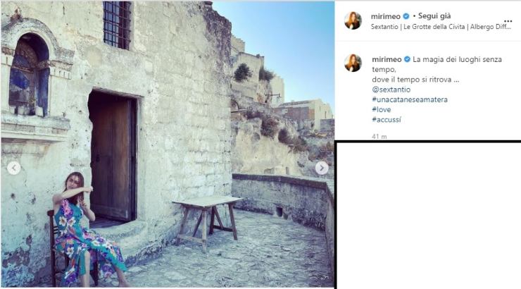 Nell’ultima immagine pubblicata, invece, si trova a Matera, probabilmente sul set di un film; indossa un vestito lungo e floreale, con uno spacco vertiginoso al centro. E’ seduta su una sedia con le gambe aperte, spalancate, lasciate in bella mostra dal vestito che si apre. “La magia dei luoghi senza tempo – ha scritto nella didascalia – dove il tempo si ritrova“.