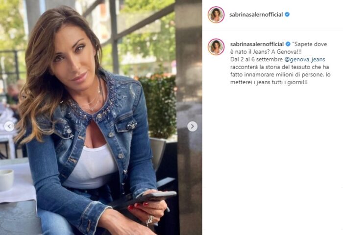 Sabrina Salerno ha pubblicato una foto sul suo profilo ufficiale di Instagram per celebrare il jeans. Sguardo ammaliante e scollatura mozzafiato.