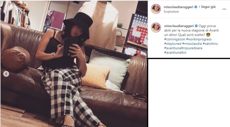 Nell’ultimo post, invece, due scatti casti, sobri. D’altronde la Ruggeri non è al mare ma seduta su un divano in quella che sembra una sala costumi. Cappello in testa, canotta nera e pantalone a scacchi, la Ruggeri ha svelato di essere lì per la prova abiti e di aver scelto i costumi per la prossima stagione di Avanti un Altro. “Quali avrò scelto?” ha chiesto ai fan.
