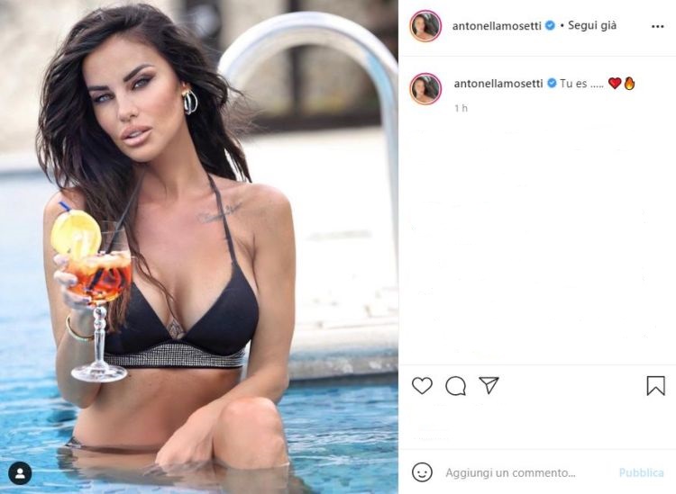 Ma prima? Lo scatto social! Appena fuori dall’acqua mostra un fisico davvero in forma. Le sue curve sono sempre lì in primo piano, pronte a essere messe dinanzi agli occhi passionali dei suoi follower. In didascalia lascia intendere qualcosa: “Tu es…”. Quel “Tu sei” rimane vago: non si conosce il diretto interessato, o anche la diretta, e non si ha conoscenza di ciò che potrebbe essere. Oltre le curve, fuori dall’acqua c’è anche un po’ di mistero. Al prossimo scatto!