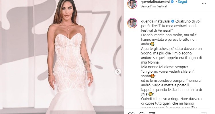 Ai suoi tantissimi follower Guendalina Tavassi ha rivelato che sfilare sul red carpet è stato davvero un sogno, soprattutto perché era il sogno di sua nonna vederla lì.