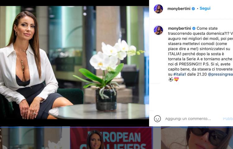 Interazione con il pubblico, per poi spostarsi sugli appuntamenti di questa sera che la vedranno protagonista: “sintonizzatevi su Italia perché dopo la sosta è tornata la Serie A e torniamo anche noi di Pressing!”. Anche nelle storie la donna ha voluto rinforzare il concetto, con un sondaggio e alcune domande rivolte ai follower.