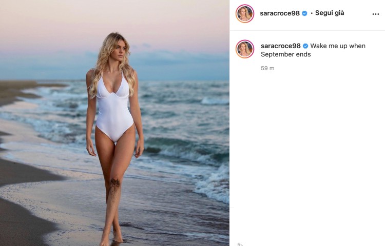 Altro giorno altro scatto per Sara Croce, che anche questa mattina ha dato il buongiorno ai fan con il solito post da favola. La giovane, sempre attivissima sui social, è intervenuta nella tarda mattinata di oggi 13 settembre con una foto in riva al mare elegante e sensuale. Una Ursula Andress dei nostri tempi, vista la posa e al costume bianco, lo scenario e la camminata in riva al mare.