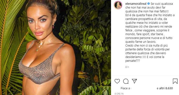 Nella didascalia del post, ai suoi tantissimi e affezionati follower Elena Morali ha fatto sapere di aver cambiato prospettiva di vita da qualche mese. A detta sua ha iniziato a voler realizzare ciò che la rende davvero felice, come scoprire il mondo, viaggiare, fare sport e altro ancora.