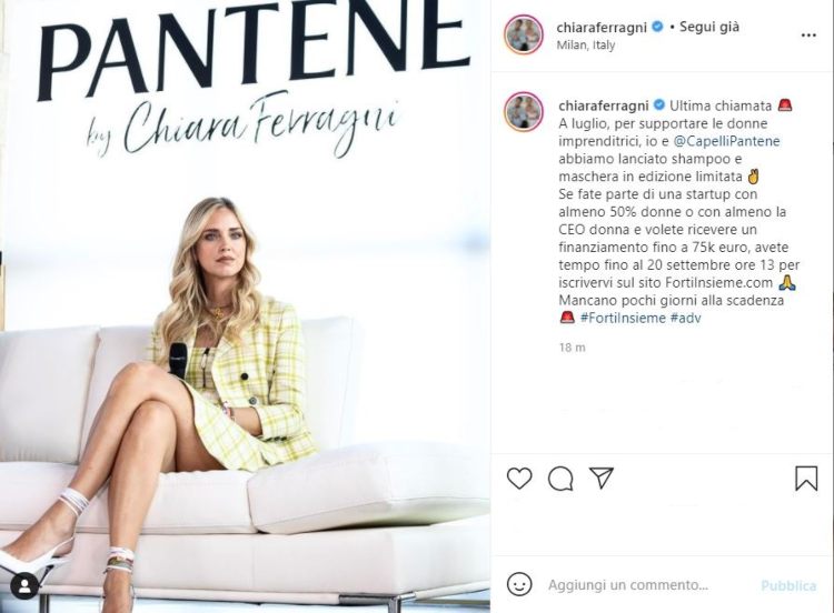 È davvero l’ultima chiamata per partecipare ed iscriversi al progetto, che trovate sul profilo personale di Instagram della Ferragni stessa, o è qualcosa sul quale si può ancora attendere? In termini di numeri sì: c’è tempo fino al 20 di settembre alle ore 13.00.