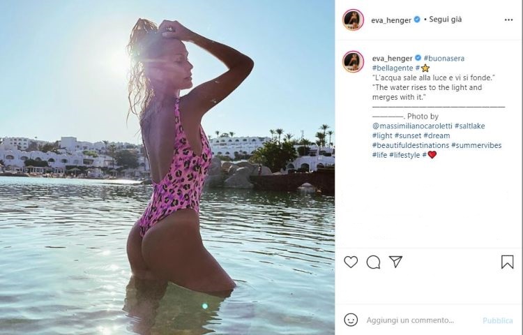 A pochi giorni dalla fine dell’estate si presenta così. Appena fuori dall’acqua, con un costume che si alza, in posizione verticale, sempre di più, fino a mostrare un lato posteriore che lascia senza parole tutti i suoi follower. Coloro che possono apprezzare, ancora una volta, la bellezza di Eva.