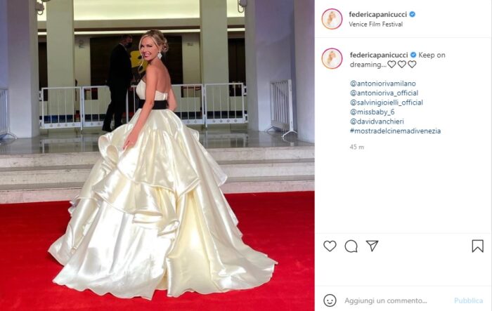 Federica Panicucci a Venezia con l’abito bianco: il ricordo e il “continuare a sognare” della conduttrice
