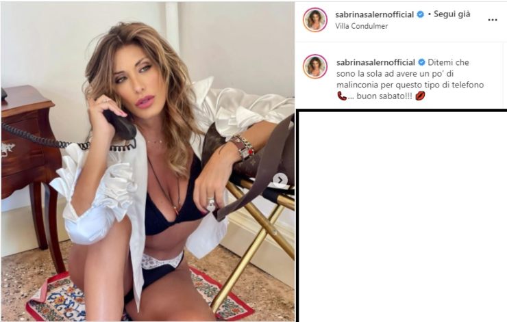 Sabrina Salerno risponde al telefono ma è in intimo: décolleté ed inguine in bella mostra, la cantante non smette di stupire. Instagram impazzito