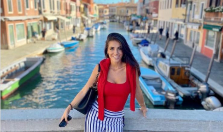 In giro per la penisola godendo delle bellezze naturali e culturali che solo l’Italia sa regalare, la giornalista sportiva si mostra felice e spensierata proprio come una turista in vacanza. Eleonora si trova a Murano, l’isola del vetro in prossimità di Venezia. Con alle spalle un canale ed il tipico panorama veneziano, la Boi indossa un pantalone a righe ed una canotta rossa che a stento contiene le sue curve.