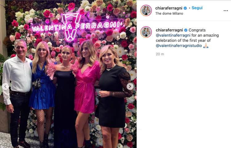 Sorelle, amiche e da qualche tempo anche colleghe. Così Valentina e Chiara, che insieme a Francesca hanno sfondato nel mondo dei social, e anche della moda. Nella mattinata di oggi la sorella maggiore ha condiviso una serie di foto della festa organizzata da Valentina. Festeggiamenti dunque per il primo anno alla Milano Fashion Week del brand della sorella. Chiara si è mostrata anche insieme all’amica Karen Wazen Bakhazi.