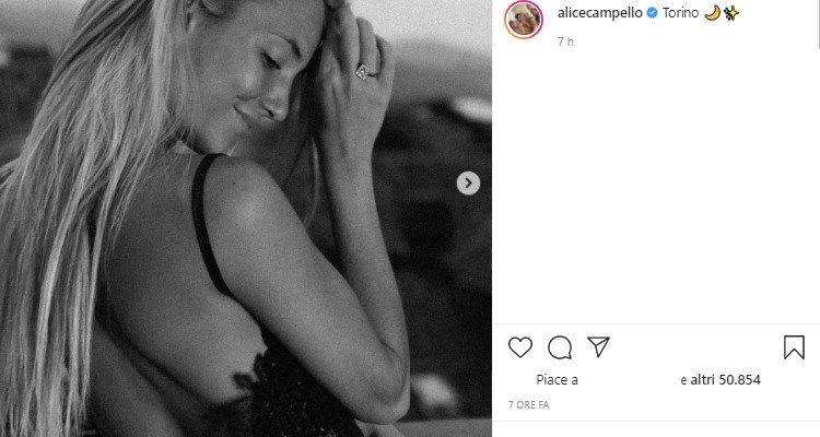 Nel secondo scatto si mostra di spalle e raccoglie i capelli con le mani, la schiena è tutta scoperta. L’occhio dei fan cade più in basso, la foto non inquadra però il suo fondoschiena da paura. Il vestito di pizzo in certi punti è trasparente, Alice Campello con la sua sensualità da vendere ha infiammato il web.