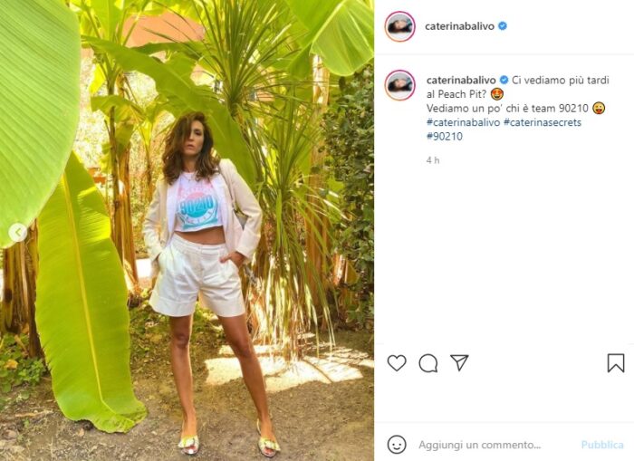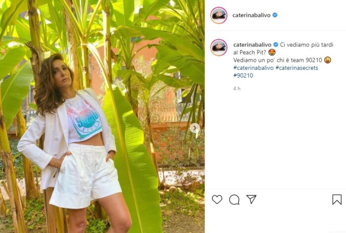 Dunque, poche ore fa, la conduttrice ha deciso di mostrarsi sui social in una location molto suggestiva, in mezzo ad alcune piante. Ma quello che ha sorpreso tutti quelli che la seguono è il suo abbigliamento, totalmente casual e dedicato a Beverly Hills 90210, la famosa serie anni 90.