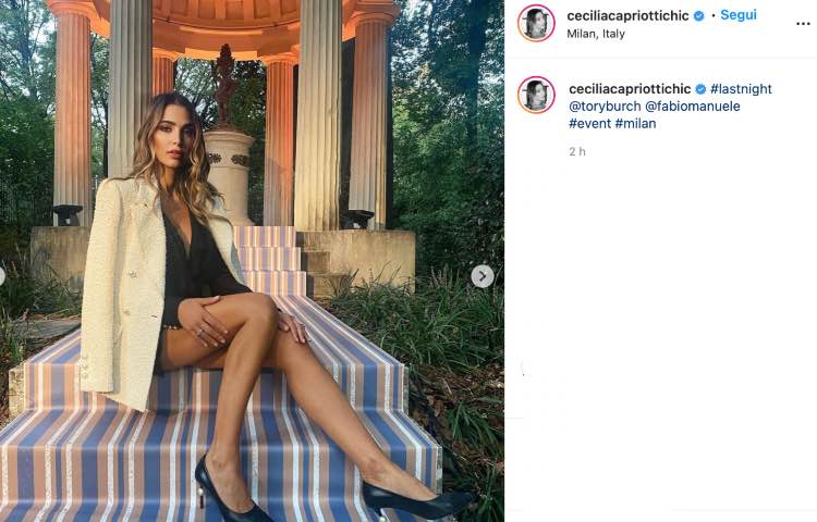 Cresce la voglia degli outfit autunnali, in vista anche della Milano Fashion Week che sta ormai entrando nel vivo. Anche Cecilia Capriotti, in qualità di modella e influencer, è intervenuta già più volte tramite social mostrando eventi e abiti di alta moda. Nel post di oggi la donna si è dunque immortalata in ben due scatti, risalenti alla serata di ieri, uno dei tanti eventi che in questi giorni si stanno tenendo a Milano.