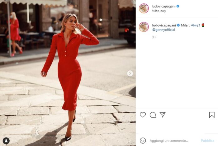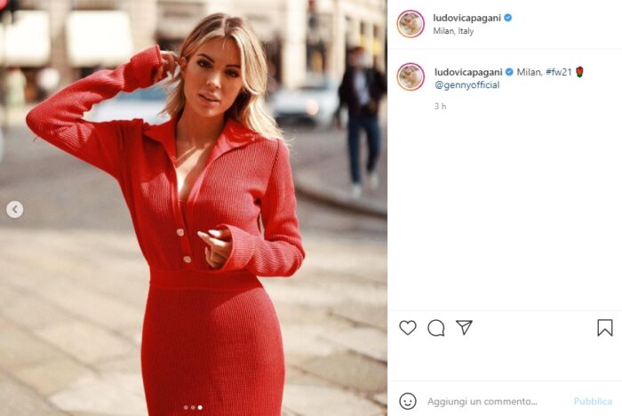 Ludovica Pagani ha incantato tutti i suoi follower pubblicando un post su Instagram in cui è vestita di rosso, elegante, nel centro di Milano.