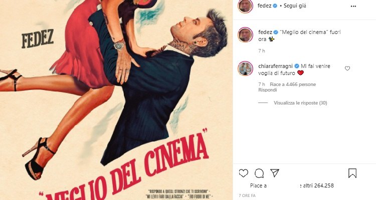 Dopo la mezzanotte Fedez ha postato la cover del nuovo singolo sul suo profilo Instagram per annunciare ai suoi follower che il brano è ufficialmente disponibile. Immediato è stato il commento di Chiara Ferragni che ha riportato una frase del testo che dice: “Mi fai venire voglia di futuro”.