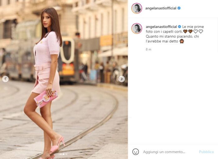 Angela Nasti ha deciso di cambiare look. Bellissima, pronta ai cambiamenti come la sorella Chiara, carnagione chiara, capelli neri lunghissimi. Il pubblico di Canale 5 ha avuto modo di conoscerla meglio durante il suo percorso da tronista, alla fine del quale ha scelto Alessio, ve lo ricordate?
