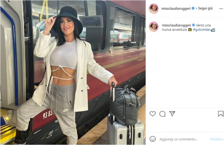 La carriera di Claudia Ruggeri potrebbe subire presto una nuova svolta. Il nuovo post condiviso sul suo profilo Instagram la vede in stazione mentre si prepara a partire verso Milano. Nella descrizione la ‘Miss’ di ‘Avanti un Altro’ comunica ai suoi followers che sono in arrivo novità importanti e che sta andando verso una nuova avventura.