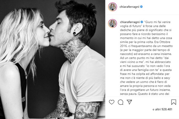 Come potete vedere, l’influencer ha scritto un lungo messaggio sul suo profilo Instagram che inizia con una frase che Fedez le ha detto a ottobre del 2016, quando si frequentavano da un mese, e di nascosto: “Giuro mi fai venire voglia di futuro”.
