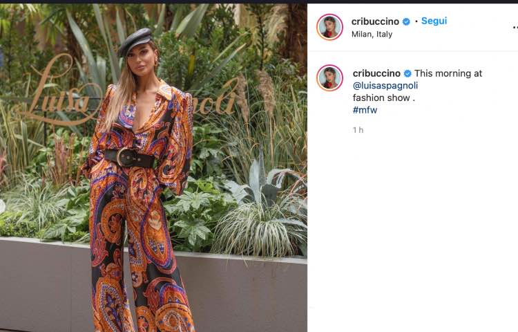 Nella mattinata di oggi, 26 settembre, è dunque arrivato l’ennesimo post in occasione dell’evento di Luisa Spagnoli. Due foto per Cristina nello stesso post, in cui la modella ha sfoggiato un abito colorato elegantissimo e originale. Camicia aperta sul davanti, cinturone e basco nero di pelle per la showgirl calabrese, che ha incanto i fan con la sua solita classe ed esplosività.