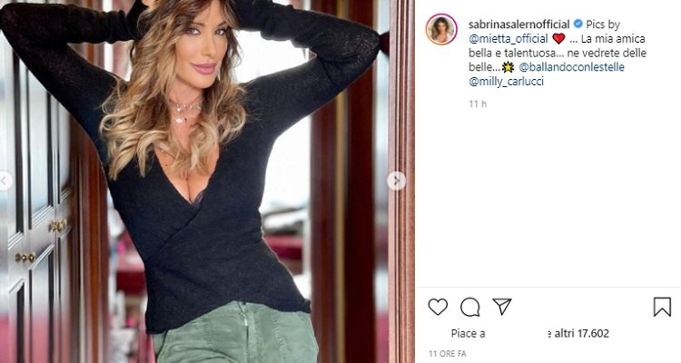Nell’ultimo post pubblicato ieri sera su Instagram Sabrina Salerno indossa una maglia che mette in risalto il suo décolleté pazzesco, la scollatura infatti è profondissima. I fan guardano subito lì, è impossibile non ammirare tutta la sua bellezza e la sua sensualità, l’hanno infatti riempita di complimenti e like.