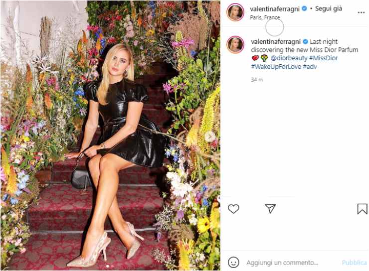 Valentina Ferragni, la gonna sale un po’ troppo: le gambe fanno festa