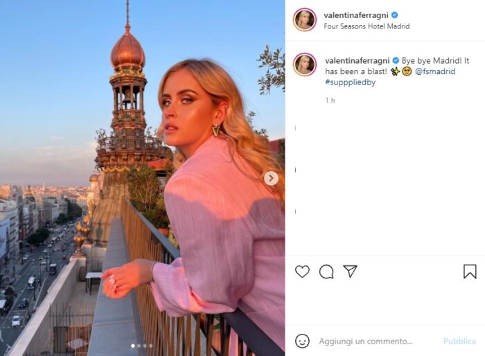 Valentina, ad esempio, mentre la sorella Chiara si trova a Parigi con un seguito di quasi 25 milioni di follower curiosi di sapere che cosa fa, si trova a Madrid. Tuttavia, la ragazza sta per salutare la città e nel farlo ha pubblicato un po’ di foto sul suo profilo Instagram.