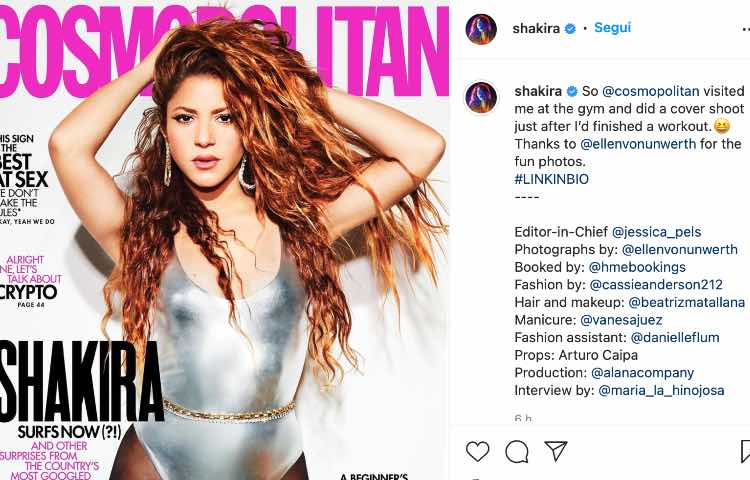 Il suo singolo, da poco rilasciato, è già un successo. Dalla copertina della rivista si può scorgere il topic: “Shakira Surfs now?”, visto che nel video della nuova canzone la donna, in versione cartoon, surfa sulle note della sua hit. Anche nelle storie la pop star è intervenuta con diversi scatti, con il medesimo outfit, che hanno lasciato a bocca aperta i suoi 70milioni di follower.